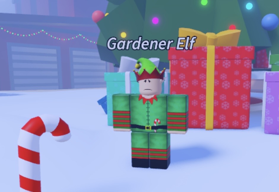 入り口右側の丘を登った左側にガーデナーエルフがおり、話しかけるとクエストが発生します。ノースポール限定鉱石のキャンディケーンを100個集めると後述のオーナメント200個(&経験値、かけら)がもらえます(1度限り)。