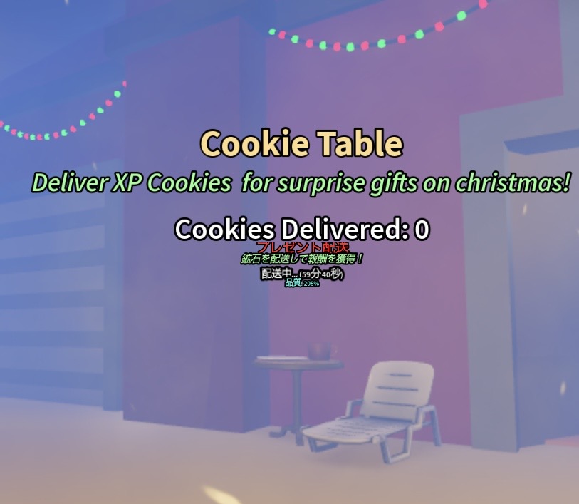 ※25日22:59以降クッキーが置けないため、12月24~25日限定だと思われます。ファクトリーの前にある「Cookie Table」にXPクッキーを置き(日本時間25日の22:59迄)、置いたクッキーの数によってファクトリー前の大きいクリスマスツリーの下でクリスマスプレゼントがもらえました。