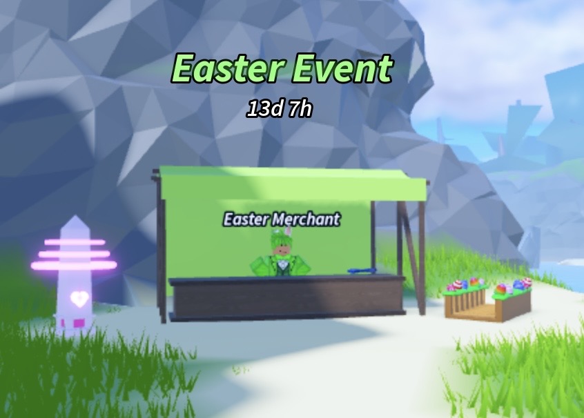 ラッキーリバーにいる子供の隣の道が専用ショップに続いています。「特別なイースターエッグを川に落として、あちこちに散らばってしまったので集めてほしい」と専用商人から話を聞くことができます。